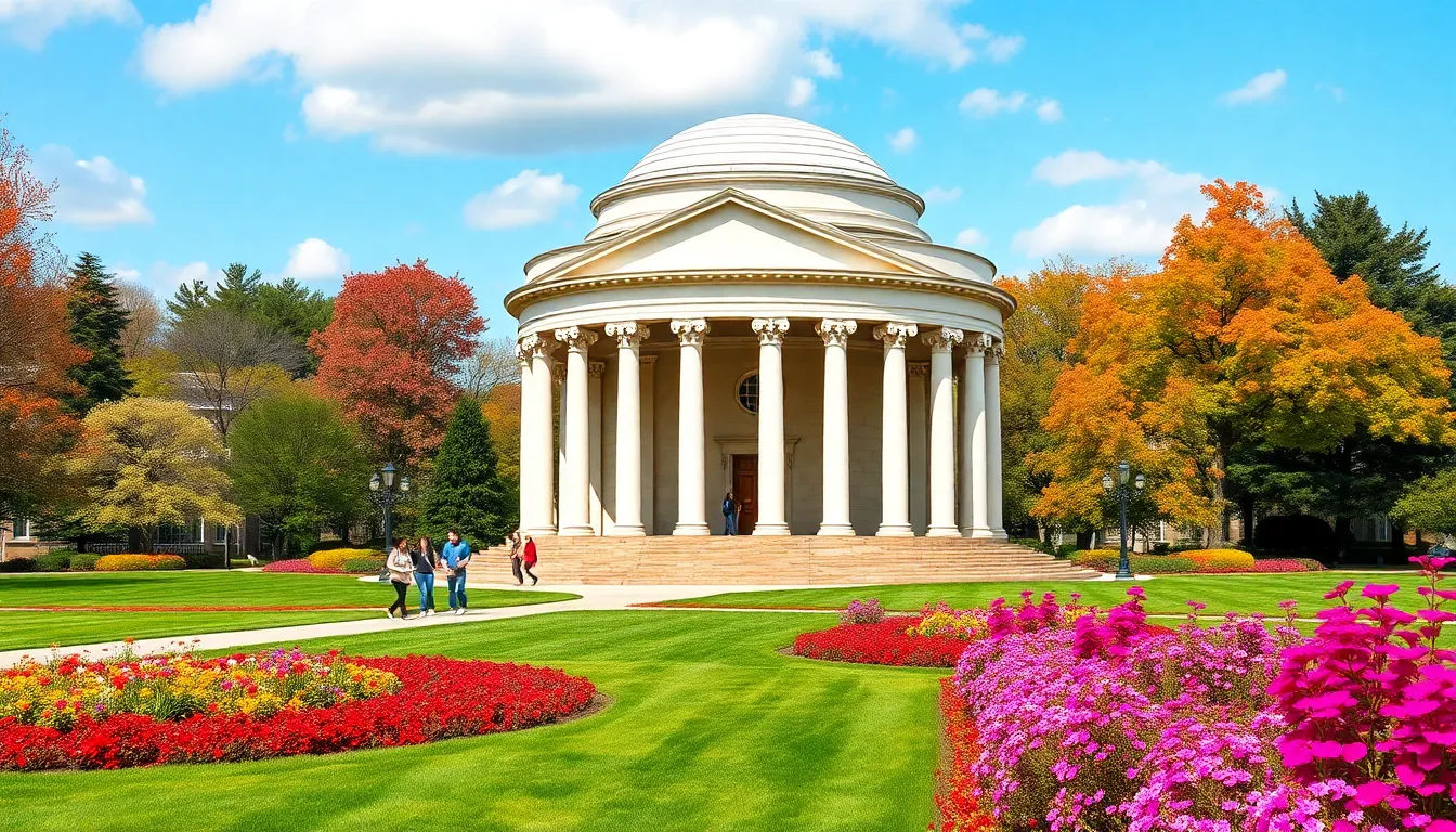 University of Virginia in Charlottesville boasts a unique blend of history and beauty. The Rotunda, designed by Thomas Jefferson, adds an elegant touch to the campus, while the surrounding gardens enhance its charm.